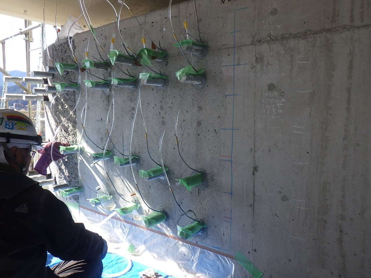 あと施工アンカーは、既存のコンクリート構造に対して後から強度を加えることができる工法で、特に橋梁のような大型インフラの耐震補強に有効です。今回は現場状況に応じて、最適なアンカー材と施工方法を選定し、安全性と耐久性の確保に努めました。